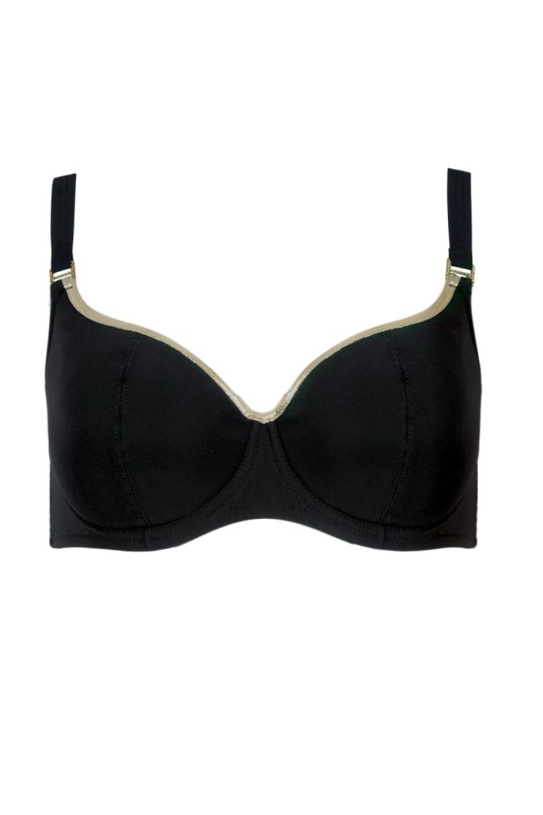Advantages of the Black Bikini Bra : Perfect Fit Vertically cut foam cup: for a perfect fit to your bust High-quality underwires: for excellent support, even for larger sizes Underwire support on the sides: for additional stability and comfort Luxurious Finishes Gold trim: to accentuate your line Classic adjustable straps: for your comfort (width varies by size) Elegant gold-tone metal details: for an extra “wow” effect Quick-drying foam Practical snap closure: for speed and ease of use